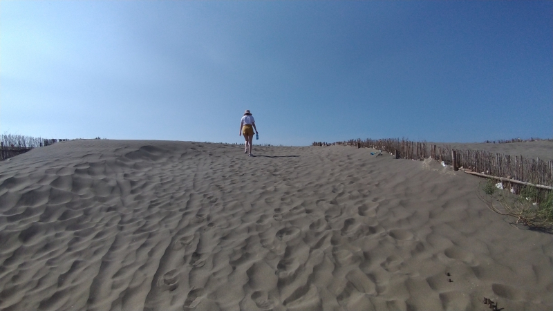 草漯沙丘一走進去就是立刻要爬沙坡上去,非常的吃力,但你會發現用這角度往上拍攝時,就像是在真的沙漠走路一樣。