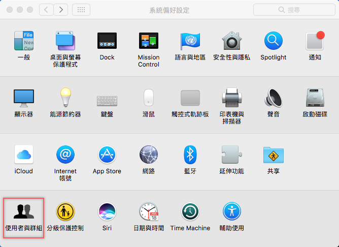 打開系統偏好設定,進入左下角「使用者與群組」。