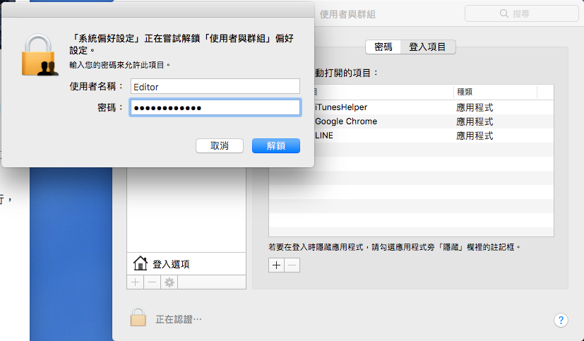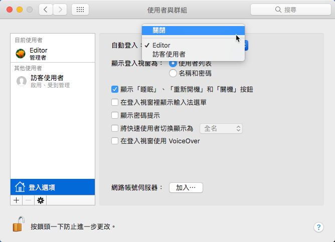 設定好記得點左下方的鎖頭,再輸入密碼解鎖才算完成。