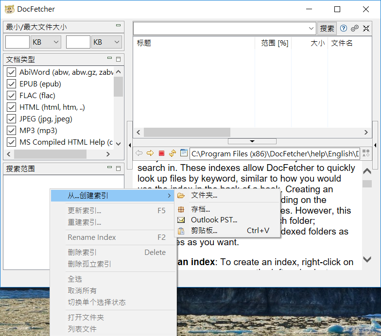 Super Finder 嗎?今天要介紹的也是類似的搜尋軟體「DocFetcher」,結合了前面兩者的特點:速度快、可搜內文,也支援多種檔案類型包括各式影音、文字、圖片檔,與多關鍵字的進階排除與過濾,而且是跨平台 Windows、Mac OSX、Linux 都有版本,還有免安裝版可放進隨身碟帶著走,蠻方便的。