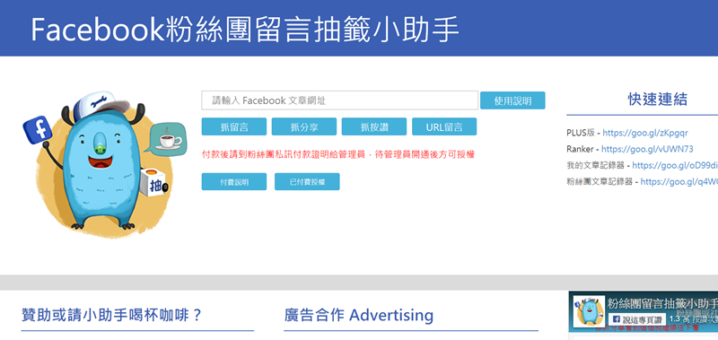 現在的商家或品牌幾乎都有臉書專頁,想當年就是教不落粉絲團剛開的時候阿湯也很茫然,不知道怎麼經營、累積人氣,連辦個抽獎都是用紙條寫一寫然後直播給大家看,直到後來越來越多人開發或分享一些好用的工具之後,才越做越順手,因此今天就跟大家分享幾個粉絲團的常用工具,包括抽籤、修圖、數據分析等功能,大部分都可免費使用(或試用),小編們可選擇自己適合的讓粉絲團經營得越來越順哦。