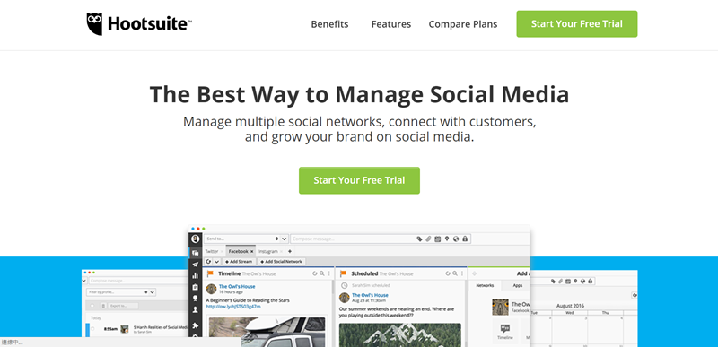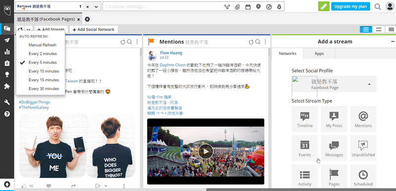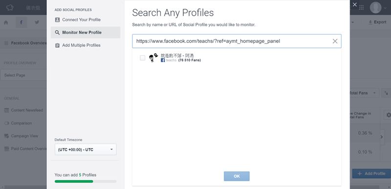 登入後選擇要新增的社群,除了臉書還有 Twitter、Google+ 共六個網站,如果你要管理的不只臉書,就可以用這個線上工具同時進行分析。
