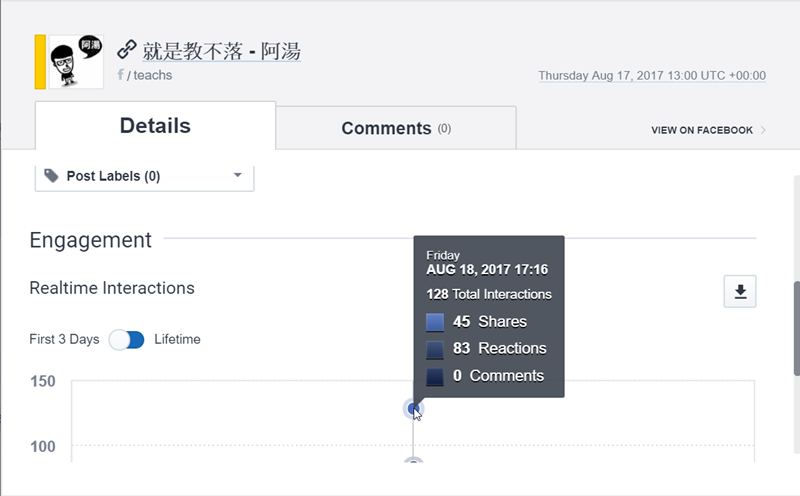 還可觀察出貼文到某個時間點為止的狀況,相當詳細。