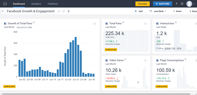 圖表分析也是一定要的,文章、粉絲、訂閱數量的狀況一目瞭然。