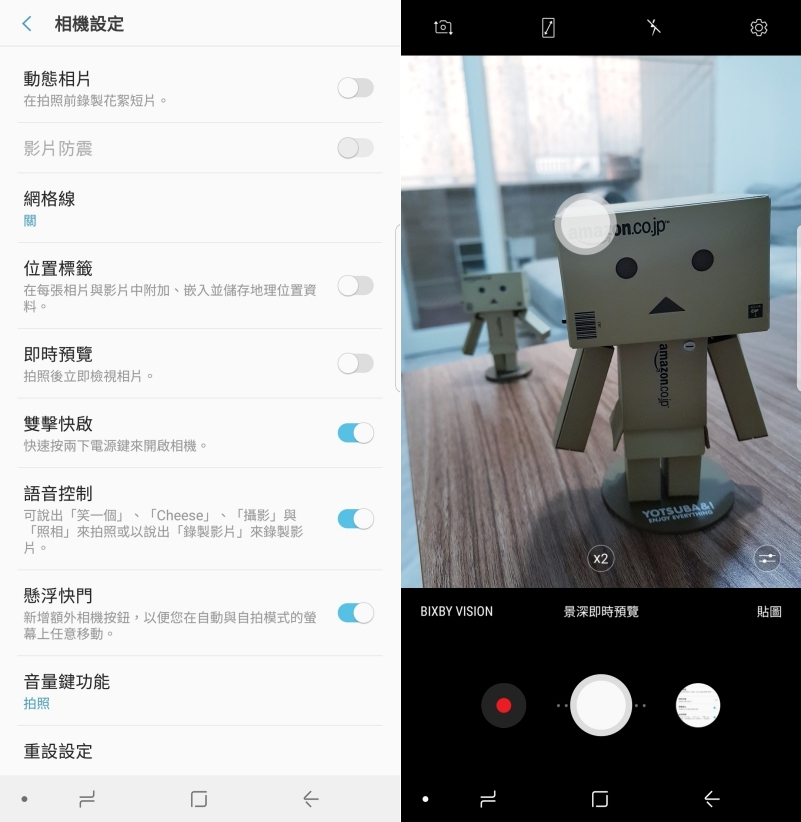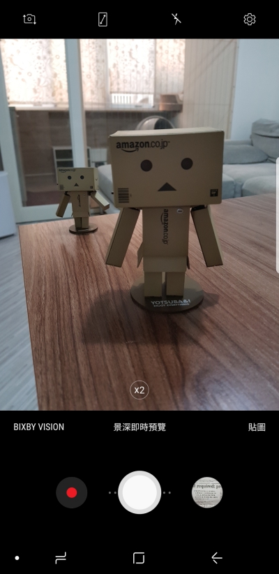 這次的雙鏡頭設計也讓相機介面看起來有種豐盛的感覺,除畫面上有個 X2 之外還有個景深即預覽,其實非常的好理解,X2 意思就是用來切換 2 倍望遠鏡頭,景深即時預覽當然就是用來開啟景深模式,可用在人像、物品等,沒有限制。
