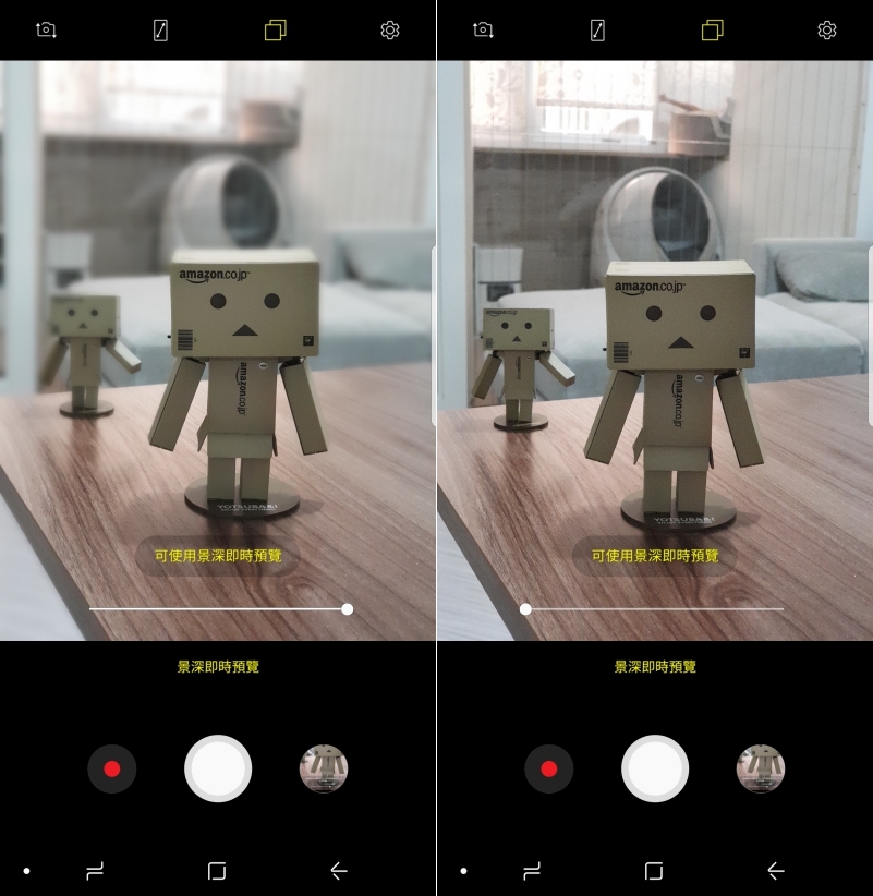 在景深模式下,可以在拍攝當下就先調整景深的等級,並且可以即時預覽畫面,可以更好的拍攝出想要景深感覺。
