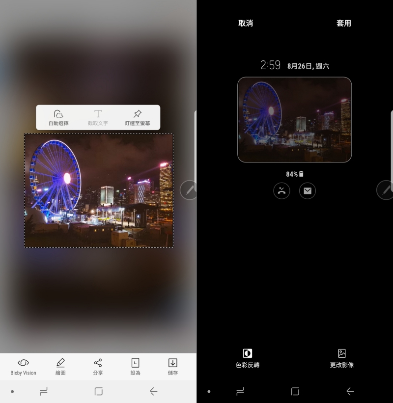 選取的畫面也可以和 AOD 畫面結合,同樣選取後,點擊下方的「設為」,就可以套用到 AOD 畫面上了。