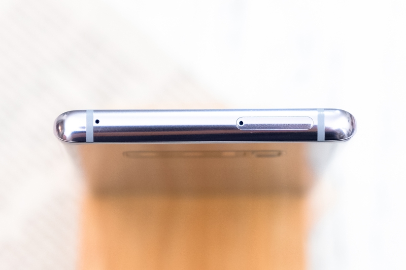 上方為降噪麥克風及 SIM 卡/記憶卡槽。