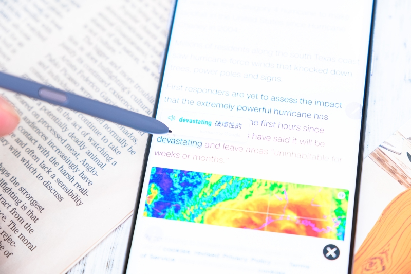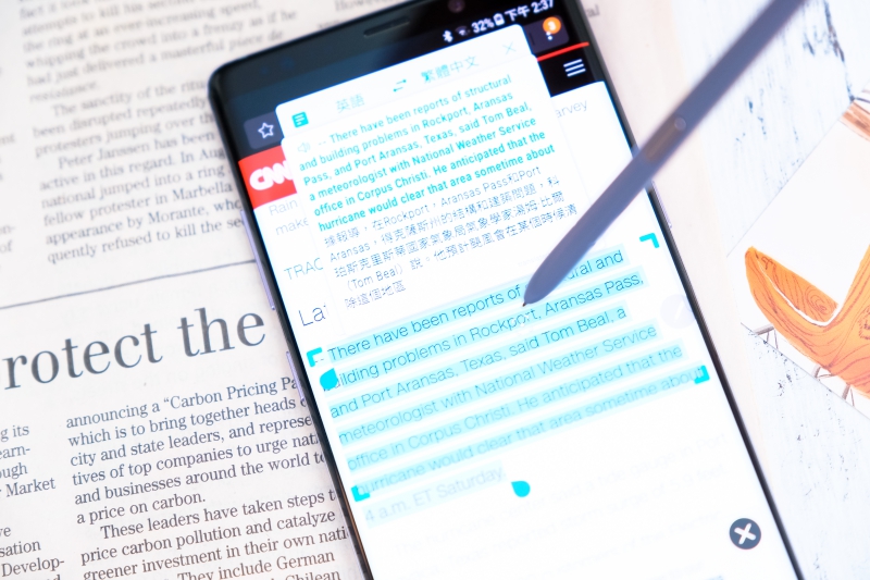 阿湯今年非常認真的在重新練習起英文,每次在閱讀英文文章時,遇到不知道的單字都得複製到線上字典工具查詢,而透過 S Pen 的懸浮翻譯功能,只要將筆指在你不懂的單字上,立刻就會出現翻譯,還能聽怎麼發音。
