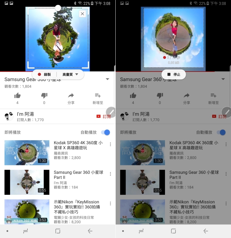 主鏡頭的部份還可以開啟動態追焦,就能自動鎖定那動來動去的不明物體(誤),像是拍攝寵物、小孩就會非常的方便,不用一直點擊螢幕重新對焦。影片錄製的部份支援 4K 錄製,不過檔案真的不小,一般阿湯都是追求流暢度,所以都會使用 FHD(60FPS),給大家參考。