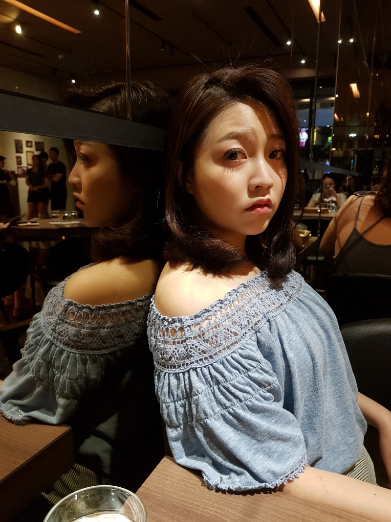 手機現在基本上真的是自拍神器了,阿湯其實請老婆拍一張照就好,按了一張覺得不錯,一連按了十幾張....他也覺得美顏的效果很不錯且很自然。