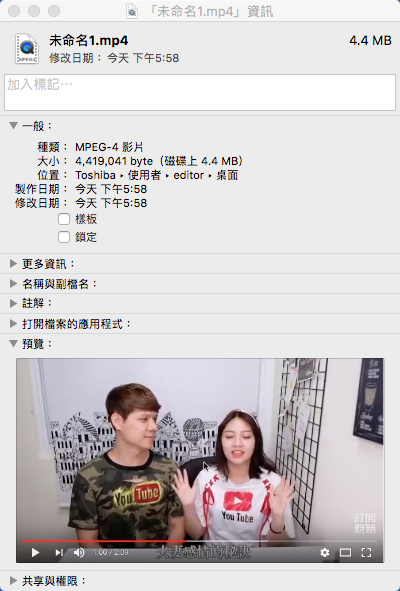 還有合併影片的功能,只要開啟一個 MOV 檔後再拖入另一個 MOV 檔,點「完成」就迅速合併。