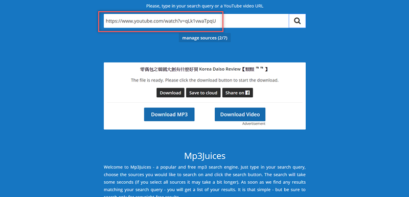 Lacey - 免費線上影音搜尋工具,超過 40 種平台等你下載」,也寫了不少關於配樂剪輯的網站和 APP,今天要介紹的「Mp3Juices」這個網站,結合了線上影音庫搜索、下載,也可貼 YouTube 網址轉 MP3,還有簡單的上傳檔案剪輯、去除無聲的功能,搜尋與轉檔的速度都蠻快的,可直接分享或存雲端,十分方便。