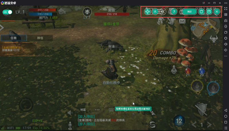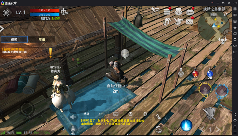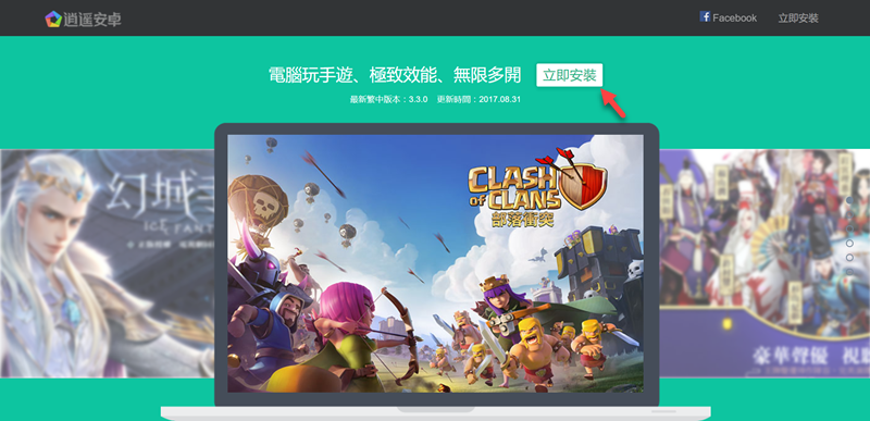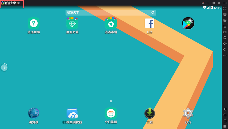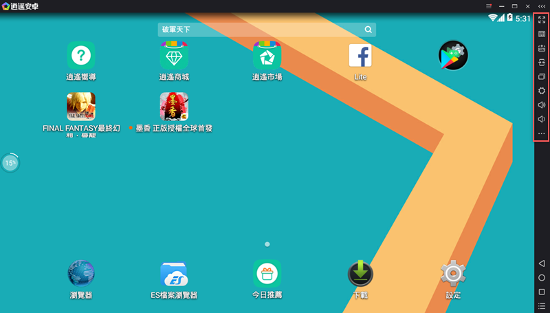 安裝速度比夜神還快,介面也是模擬 Android 螢幕並放上一些熱門的遊戲和應用程式,也可連到 Play 商店搜尋,功能列都在右側,有全螢幕、鍵盤模式、下載 Apk 等選項。