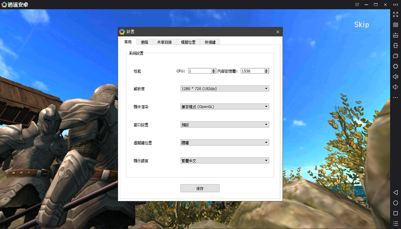 設定方面可更改快速鍵、解析度、顯卡、語言等其他性能調整,點保存後會重新開啟。