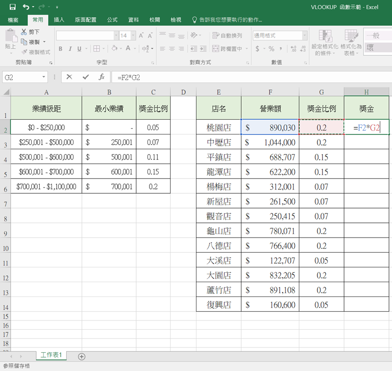 那獎金呢?用營業額乘以比例就是答案。
