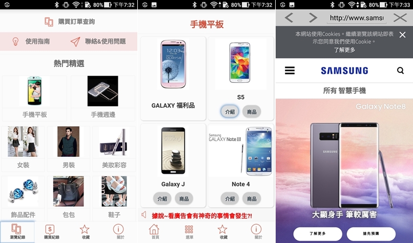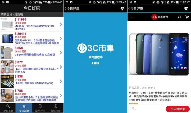 3C 產品也蠻多的,還可點介紹連到官網看產品細節,但要收藏商品還要先分享到臉書,連到賣場網站或 APP 速度也是有些慢。