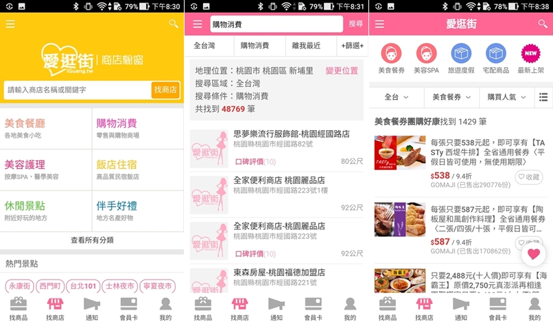 另外也可以搜尋附近商店,不只購物還有美食、住宿、景點資訊,在消費方面比較受用的就是團購好康吧,可找看看有沒有餐券優惠之類。