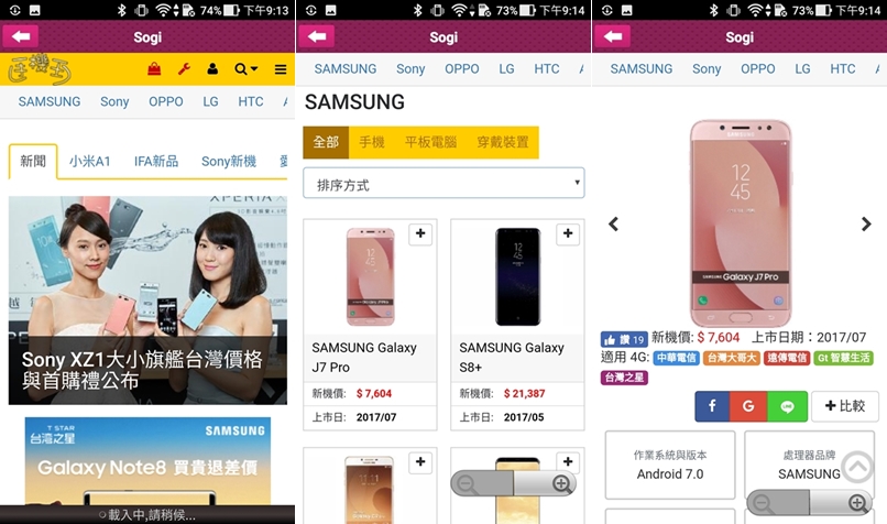 最後來看看這個關於手機的比價 APP,特點是除了各廠牌商品簡介,還會列出上市日和新機價,已上市的手機還有二手價,適用哪些電信等資訊也相當詳細,也有其他像新聞、討論區、評測文章可參考,但廣告版面有點多就是。