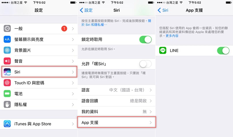 叫 Uber,不多說,先到設定區 → Siri → APP支援 → LINE。
