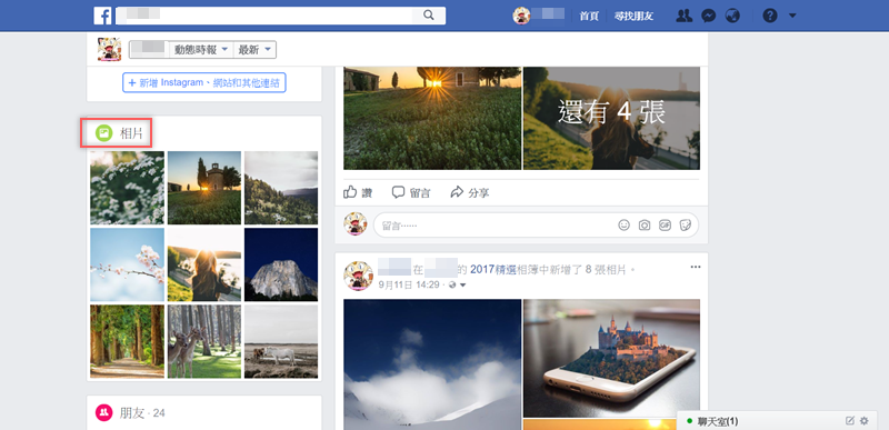 進到個人頁面,在左邊找到「相片」點進去。