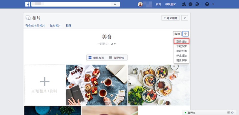 單張相片也很簡單,點照片右上角的筆型圖示,選「取得連結」。