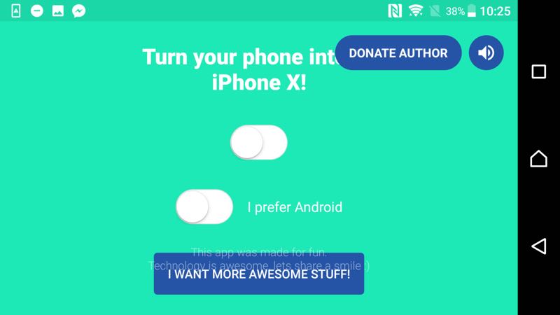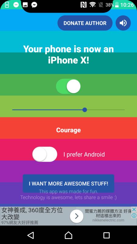 這款 app 相當幽默也相當簡單的讓用戶在下載後能夠直接進行變身。只要開啟「Turn your phone into an iPhone X」就直接變身完成!
