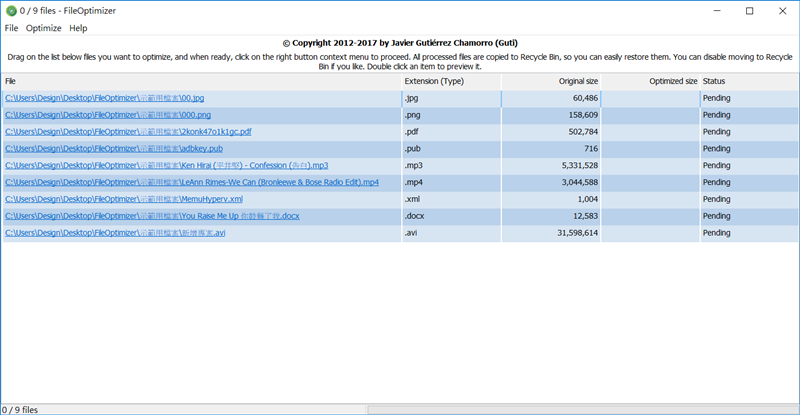 點開左上角「File」看要加入檔案還是整個資料夾,要注意的是最佳化完成後會直接產生新檔,未壓縮的原始檔則會跑到資源回收桶,如果不確定壓縮品質建議抓回來當備份。