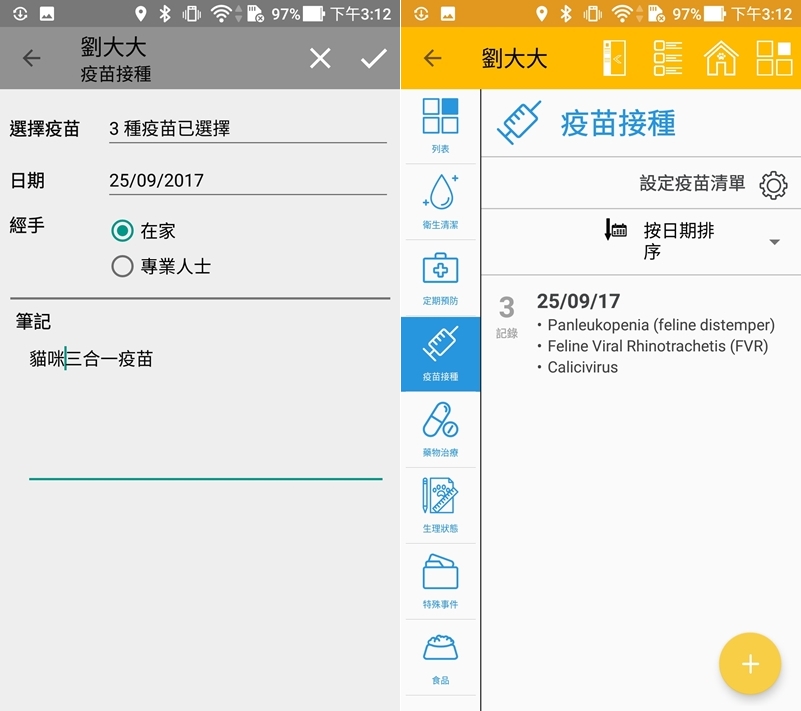 打疫苗的日期與形式,還提供各種類型的疫苗名稱可選擇,相當詳細。