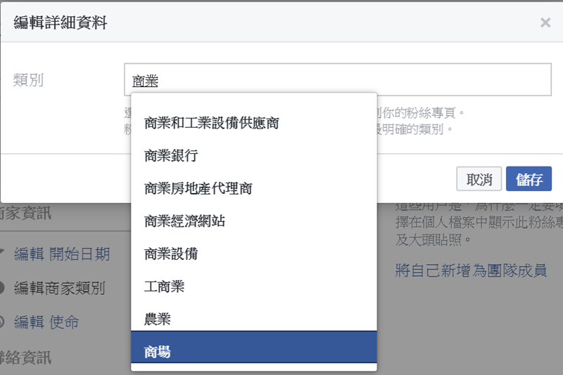 臉書其實有根據不同的類別提供一張表格可參考,大家可以確認一下自己是不是要更改,有時候改一下類別會比較容易被搜尋到哦。