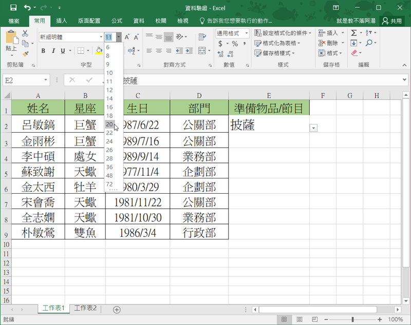 如何更改下拉式清單內的文字大小?