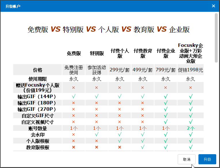 可以比較一下每個層級帳戶的功能差異,今天要送的是特別版。