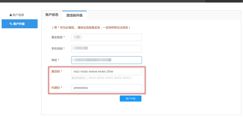 連到官網註冊後,進入「帳戶升級」區,填寫資料再輸入激活碼「