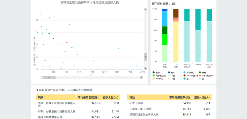 結果會有圖表和明細,分別就人數、學歷、行業職缺與空缺作分析,內容也是十分詳細。