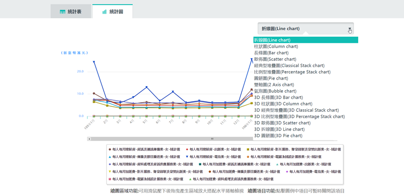 勾選的選項越多當然就越複雜,大家可以視需求斟酌,圖表類型還可隨意切換,整體來說這個網站阿湯是覺得蠻具備參考性質的,因為是官方資料比較有說服力。