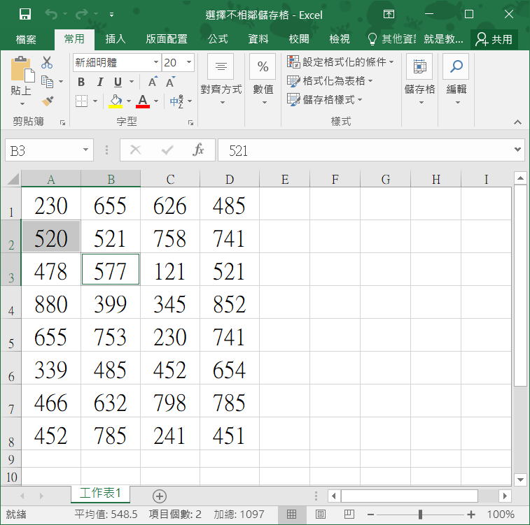 利用上述的方式,不管你要調整的儲存格相鄰還是不相鄰,都能任意選取並進行下一個動作。
