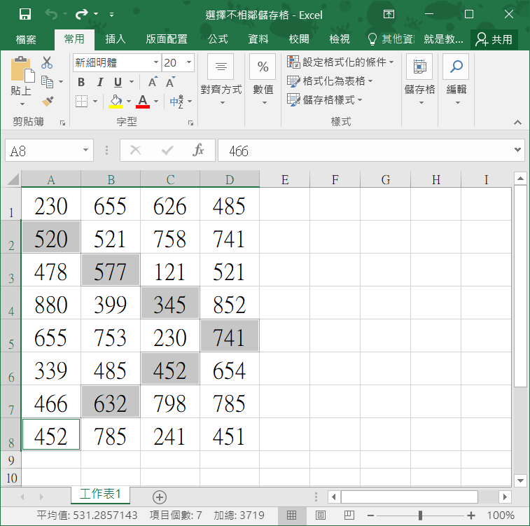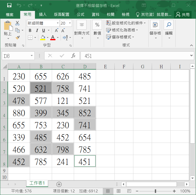 如果你放開 Ctrl 鍵之後想再加選其他儲存格,就再次按著 Ctrl 鍵用滑鼠選擇即可,選好之後就可以進行接下來的動作,例如更改字體或顏色等等。