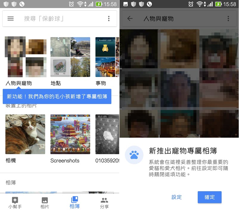 開啟相簿後發現寵物類別是跟人物一起的,大家如果有在用 Google 相簿就知道它的臉部辨識相當敏感,有時候太過「聰明」了,快來看看。