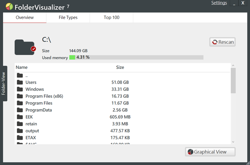 MeinPlatz - 電腦裡的檔案佔了多少空間?快速掃描並顯示資料夾目錄」這篇文章後,有兩三個朋友跟阿湯反映說不錯用,但字真的太小用內建的放大鏡看也很麻煩,今天阿湯就來補充「FolderVisualizer」這套軟體,同樣可以掃描電腦並分析硬碟、記憶體使用狀況,還能切換成圓餅圖來顯示容量比例,並列出內部檔案大小排名,而且介面更簡單、直覺,更適合討厭介面密密麻麻的朋友們。