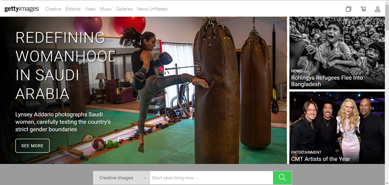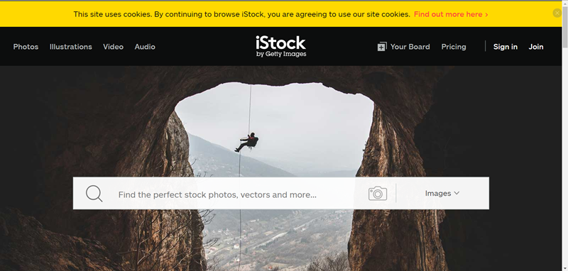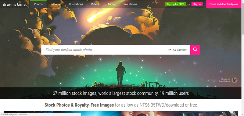 又是一個大型的綜合素材網站,包含相片、插圖、影片、音樂,搜尋列也能切換只找某個類別。
