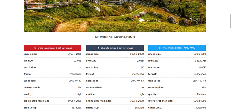 提供攝影師的資料外,底下也有拍攝時間和使用的器材規格,喜歡就點 Download 自動下載。