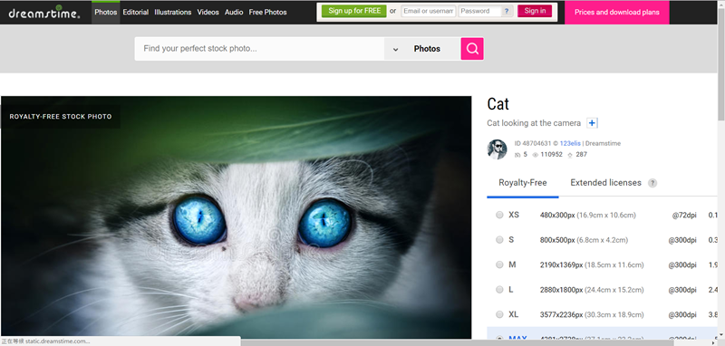 同樣是貓咪類別有些點進去就會連到其他需要付費或註冊的網站,不過這張就是網站自己的,各種尺寸可點下載。