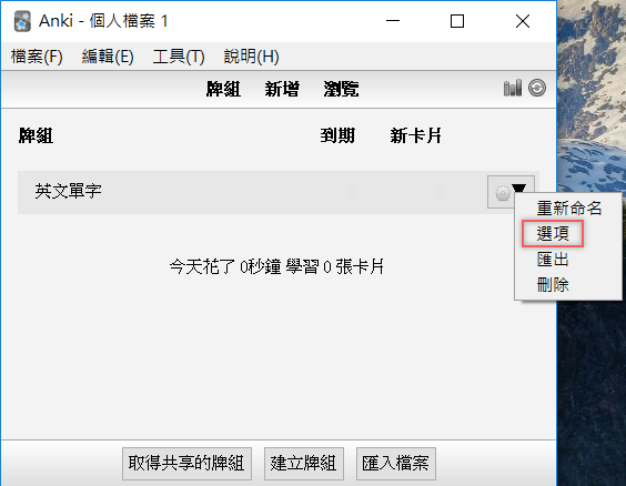 阿湯新增了一個英文單字牌組,先來設定選項。