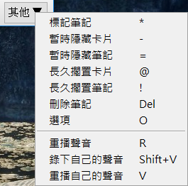 右下角的其他選項還能標記、隱藏卡片或筆記,也能在這邊設定錄音與重播。