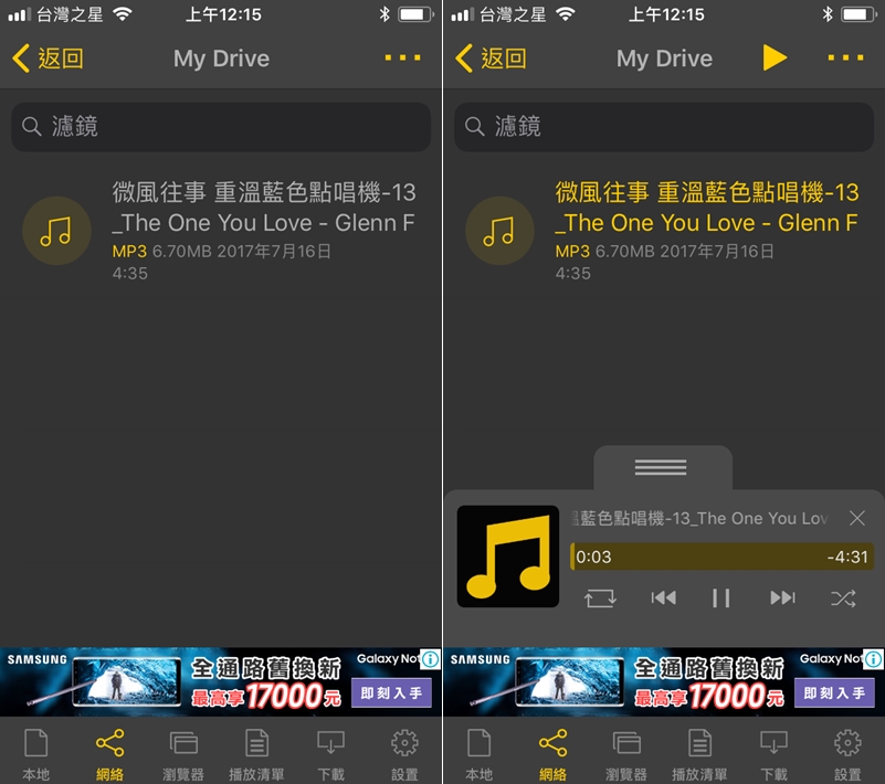 像阿湯就用 Google Drive 來示範,之前存在雲端的音樂能直接播放,該有的重複、循環等功能也不會少。