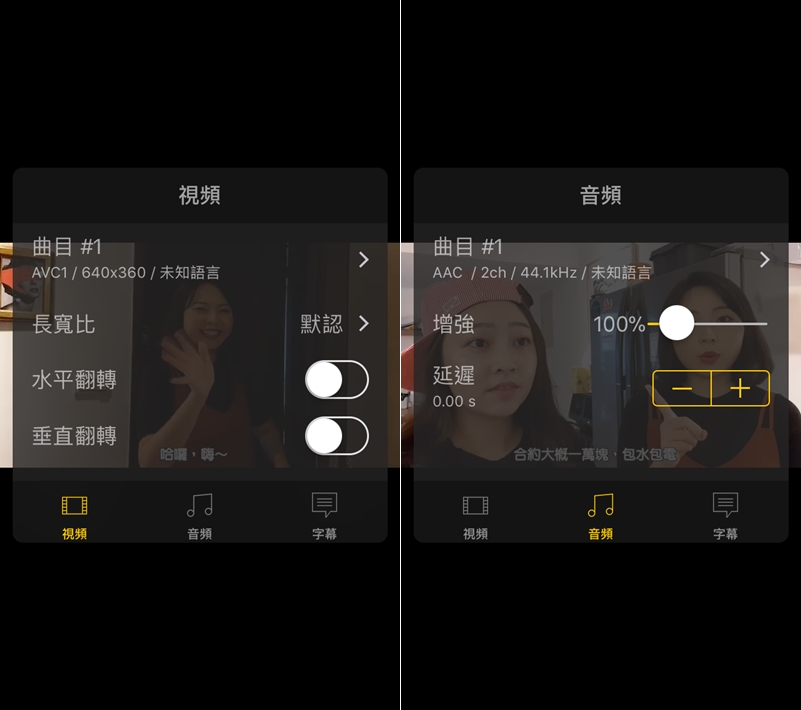 基本的顯示、音效,螢幕放大、縮小、快轉等功能都能設定,放大全螢幕後進度條會在最上方,比其他播放器更明顯也好按。