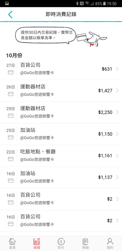 如果想要看自己消費的記錄,也都能直接透過即時消費記錄查看,這幾乎每次當你消費完後都會立即通知並列入記錄。