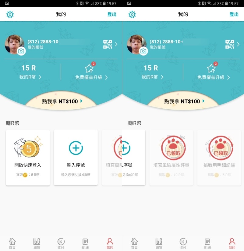 這次改版的介面還有一個值得注意的地方,就是在「我的頁面」裡,除了原本的相關系統設定之外,還加入了賺 R 幣任務、權益升級提醒等。