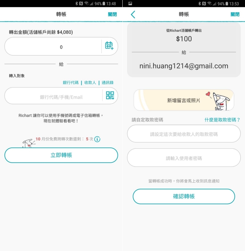 另外在這次新版的 Richart APP 中更加入了「留言及照片」的功能,讓你在轉帳時可以附帶備註或照片,讓朋友更知道這款項的內容是什麼。