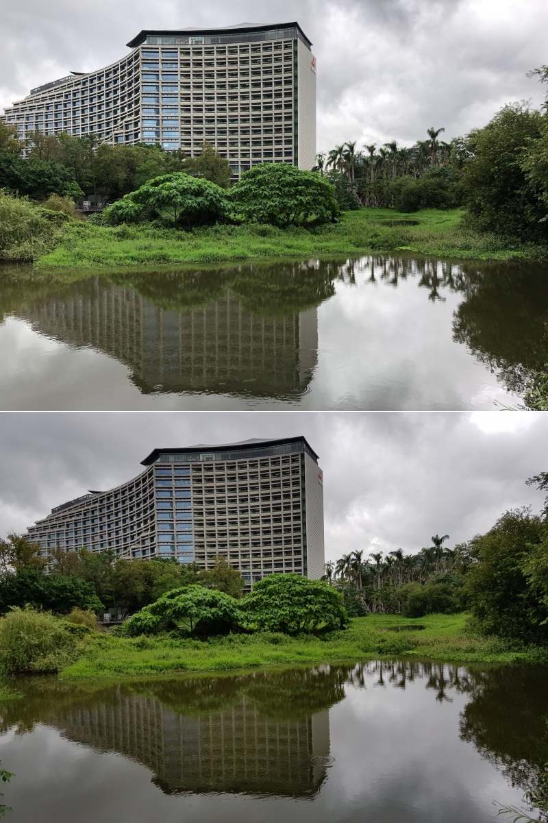 這張照片同樣是 iPhone X 較亮一些,但請注意一下上方中間的天空,Note8 保留住了烏雲的細節,而 iPhone X 同樣有過嚗問題,亮部處理不佳。